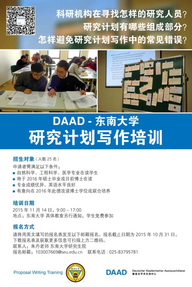 DAAD-东南大学研究计划写作培训报名通知