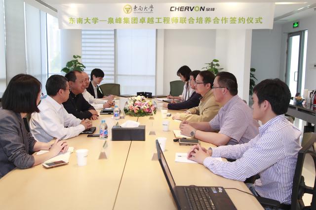 殷国栋副院长重点介绍了我校“机械工程卓越工程师联合培养”的建设现状,与泉峰集团具体协商了本次东大—泉峰“机械工程卓越工程师联合培养”的相关实施细节。