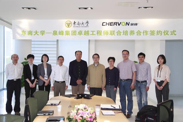 随后,我校机械工程学院张志胜书记和泉峰集团潘龙泉总裁共同签署了“机械工程卓越工程师联合培养”合作协议。签约仪式结束后,与会人员就校企双方在产、学、研等相关领域的合作进行了深入的交流。
