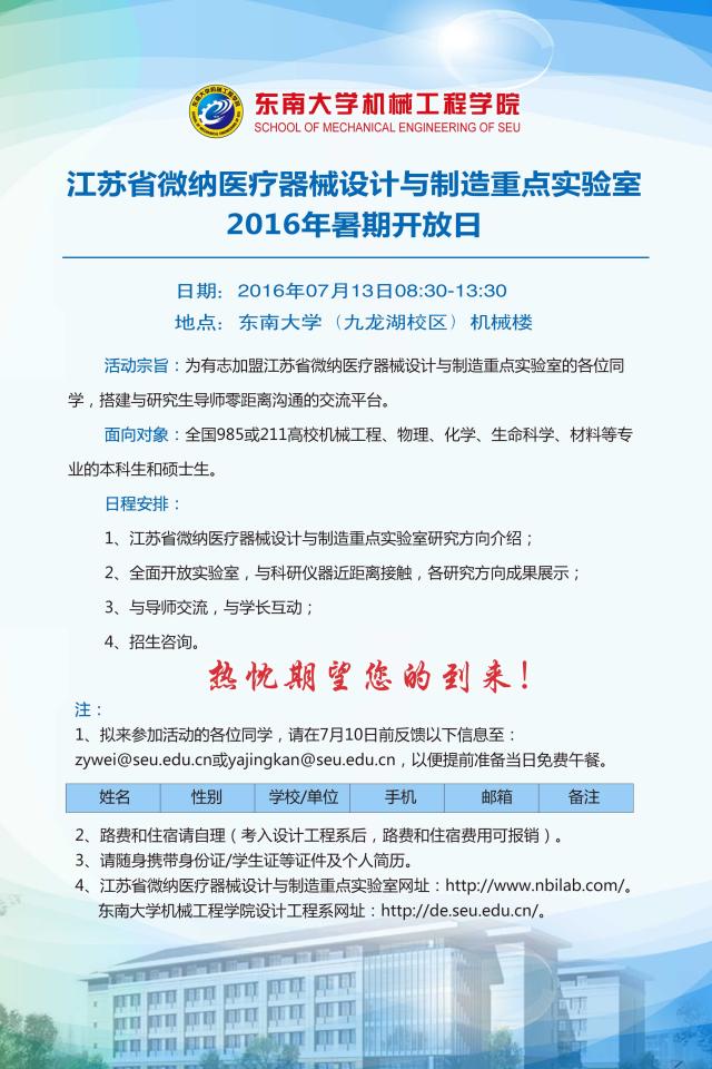 江苏省微纳医疗器械设计与制造重点实验室 2016年暑期开放日
