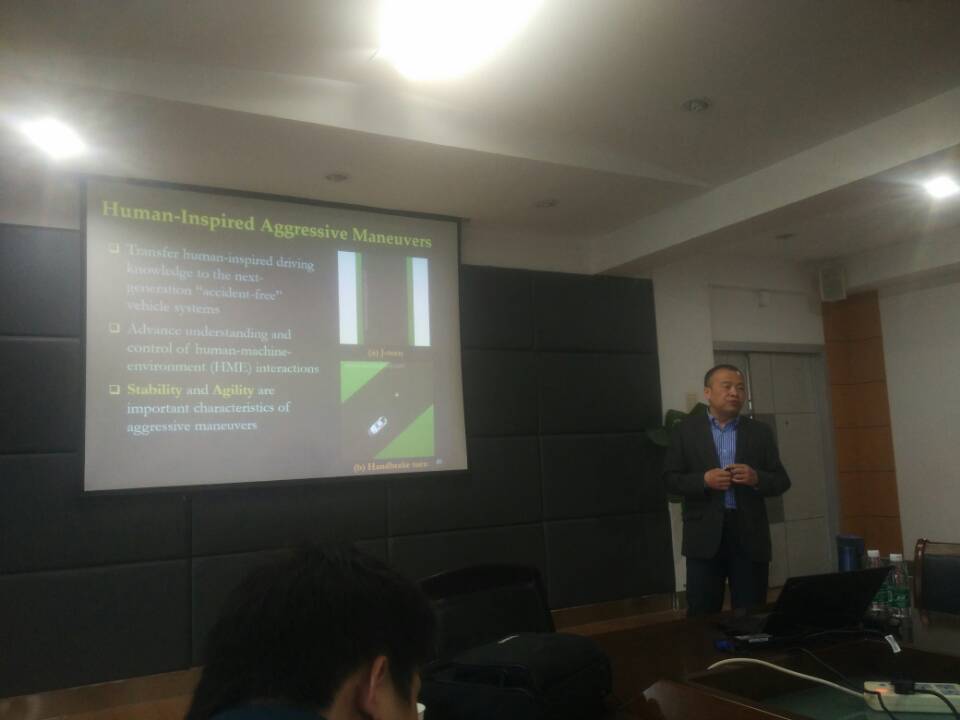 2017年3月13日上午10点,应球友会车辆工程系殷国栋教授邀请,美国罗格斯大学机械与航空系统、机器人自动化与机电一体化实验室主任、ASME Fellow、IEEE Senior Member、博士生导师、Jingang Yi教授在九龙湖校区机械楼南高厅作了题为“轮胎/路面交互动力学系统的估计、传感与控制”的学术讲座。