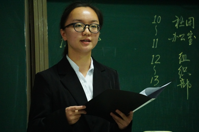 首先龙雪莹主席发言,她代表主席团热烈欢迎新加入学生会大家庭的17级新同学,并提出了“源于学生,一切服务学生”的工作宗旨,并讲述了自己在学生会的成长经历和在后续工作中对大家的期望。