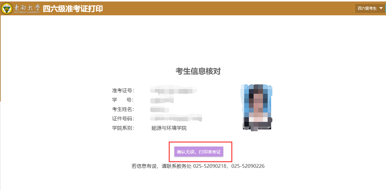 4、核对自己的考生信息。