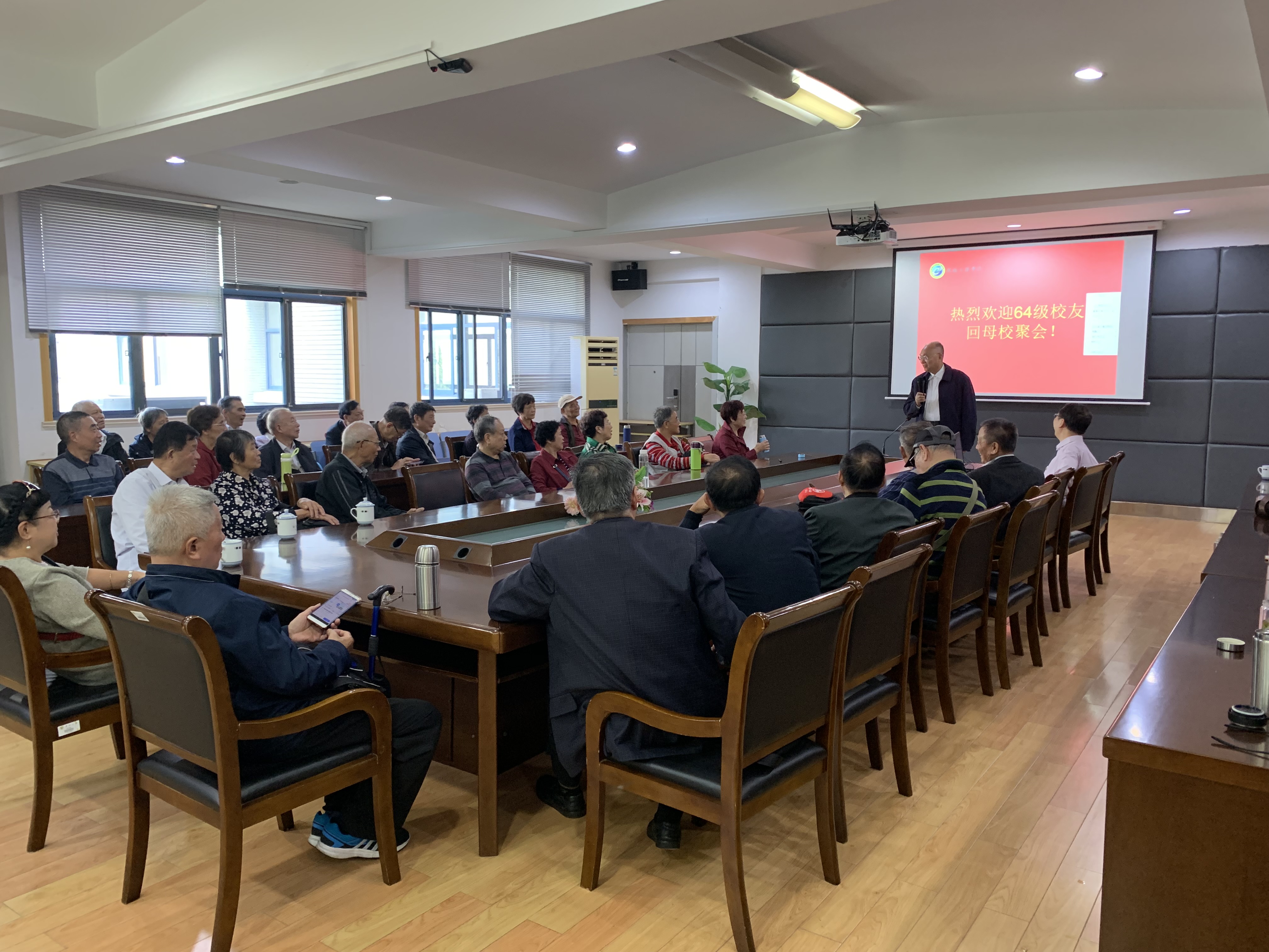 20191020日上午,64级(345班)校友及亲属一行59人回母校聚会庆祝毕业五十周年。我院党委书记张志胜教授、校友会秘书付瑜老师热情接待校友,并对他们的到来表示欢迎!
