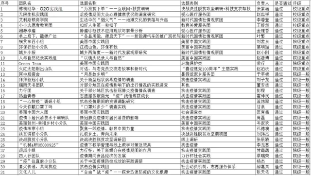 为提高学生实践能力,更好地帮助学生完善暑期社会实践前期工作部署,机械工程学院于2020年6月20日晚六点半通过腾讯会议开展社会实践立项答辩,共有31支队伍参加本次立项答辩。经过评委老师综合考虑各实践项目可行性、目标明确性、方案完整性评选,现将通过团队名单公布如下,详见下图。