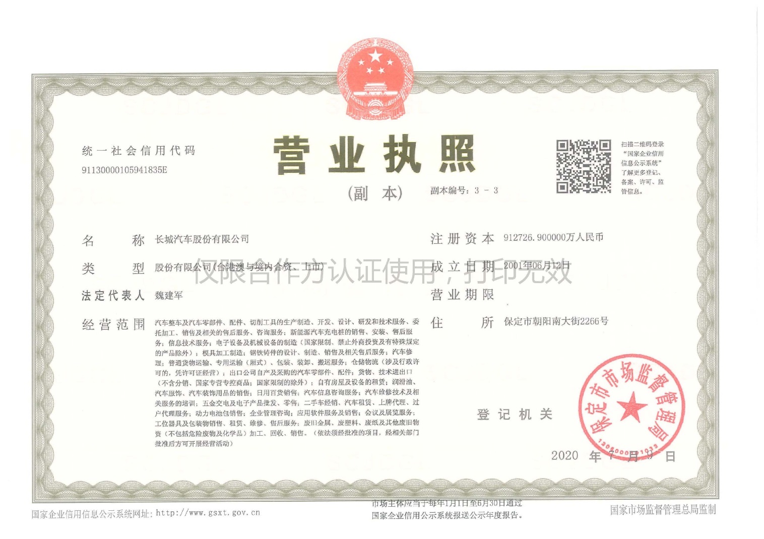 公司地址:保定市朝阳南大街2266号 网 址:http://www.gwm.cn