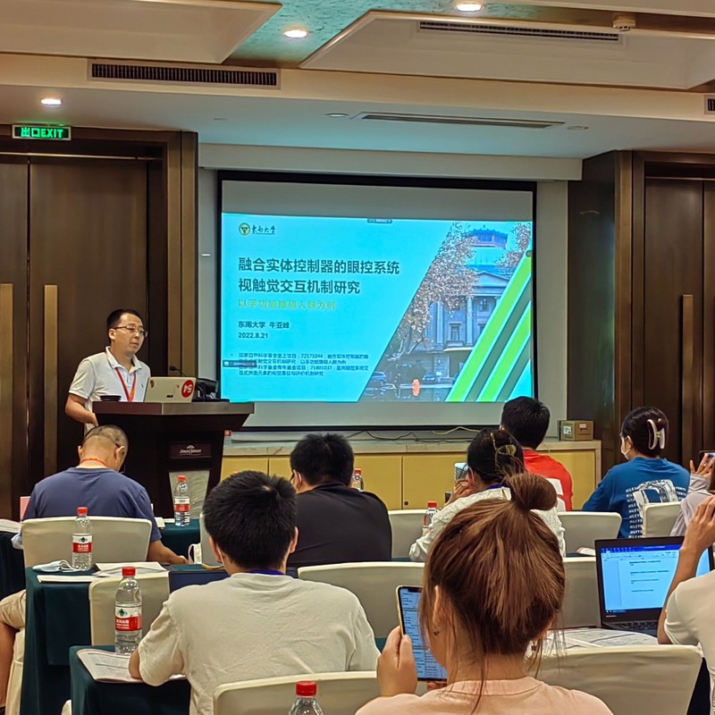 中国人类工效学学会设计工效学分会主任委员东南大学薛澄岐教授做了“人机协作下人机交互界面设计思考”的大会主旨报告,详细系统地介绍了本领域国内外研究现状和进展,提出了关于人机协作下人机交互界面设计的研究聚焦和发展趋势。工业设计系青年老师牛亚峰副教授和周小舟老师分别做了题为“眼控系统视触觉交互机制研究:以手功能障碍人群为例”和“虚拟手交互的行为绩效测评方法研究”的分会场报告。