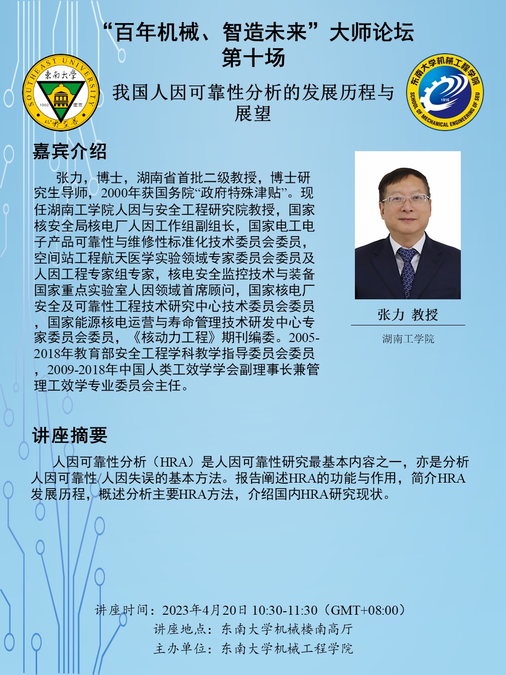 张力,博士,湖南省首批二级教授,博士研究生导师,2000年获国务院“政府特殊津贴”。现任湖南工学院人因与安全工程研究院教授,国家核安全局核电厂人因工作组副组长,国家电工电子产品可靠性与维修性标准化技术委员会委员,空间站工程航天医学实验领域专家委员会委员及人因工程专家组专家,核电安全监控技术与装备国家重点实验室人因领域首席顾问,国家核电厂安全及可靠性工程技术研究中心技术委员会委员,国家能源核电运营与寿命管理技术研发中心专家委员会委员,《核动力工程》期刊编委。2005-2018年教育部安全工程学科教学指导委员会委员,2009-2018年中国人类工效学学会副理事长兼管理工效学专业委员会主任。