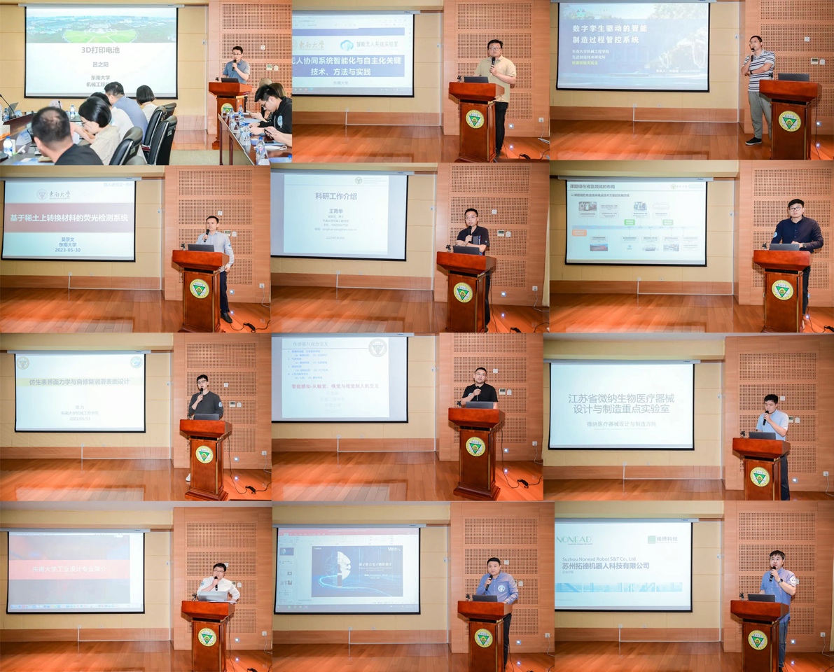 微纳生物医疗、智能车辆、智能制造、先进能源装备与工业设计5个方向的我院12位专家教授对科研成果进行了展示,苏州雷泰医疗科技有限公司、苏州拓德机器人科技有限公司、江苏博云科技股份有限公司、戴胜汽车科技(苏州)有限公司4家企业分享了公司特色产品及服务,另外工业园区15家高新苗圃与领军企业代表介绍了自己的产业需求与潜在意向。