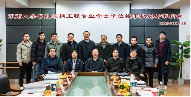 2023年12月4日上午,东南大学智能车辆工程专业学士学位授权申请现场审核会在东南大学九龙湖校区机械楼南高厅顺利召开。参加本次现场审核会的特邀专家包括教育部高等学校机械类专业教指委主任委员、东北大学原校长赵继教授,国家级教学名师、教育部高等学校机械类专业教指委委员、南京理工大学教授袁军堂教授,国家级教学名师、南京航空航天大学朱如鹏教授,南京农业大学教务处处长曹爱忠教授,南京大学教务处副处长王栋教授。出席现场审核会的还有:球友会党委书记倪中华教授,东南大学教务处处长、智能车辆工程专业负责人殷国栋教授,机械工程学院副院长毕可东教授,东南大学机电综合训练国家级教学示范中心陈建松常务副主任,教务处学籍科蒋春露科长以及智能车辆工程专业教师等。