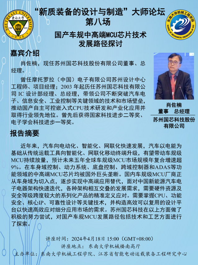 讲座地点: 东南大学机械楼南高厅