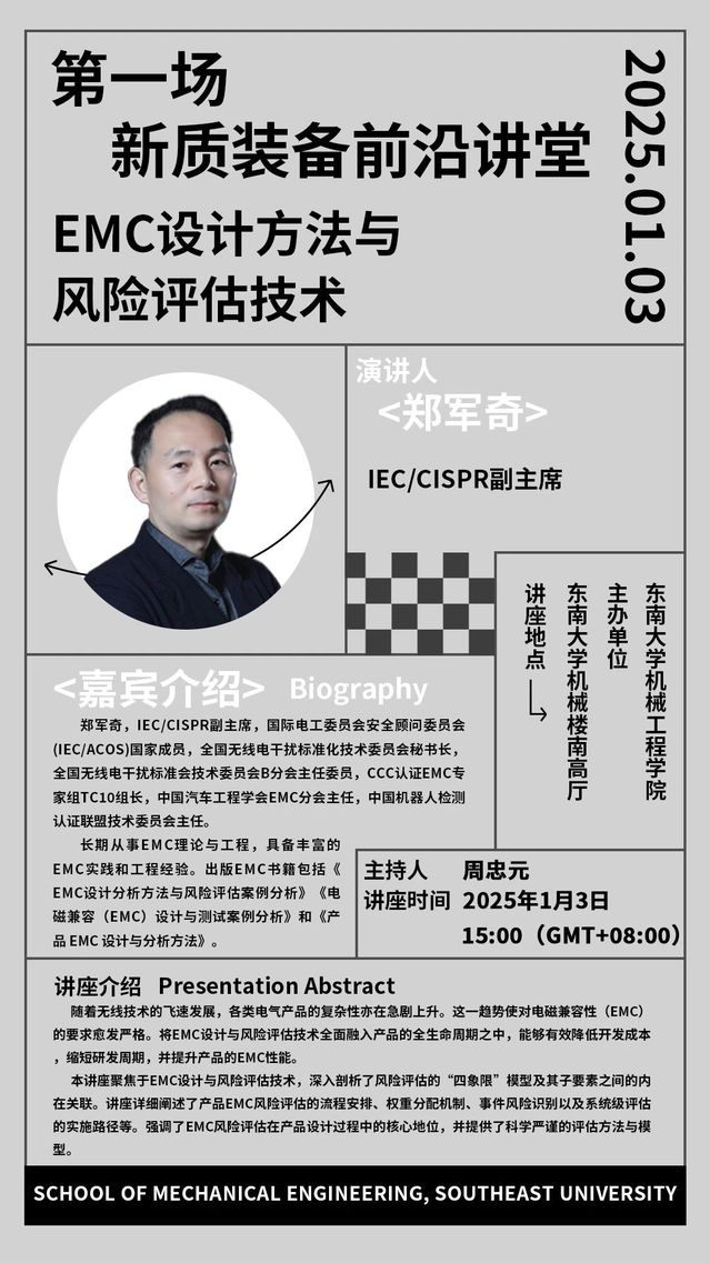 本讲座聚焦于EMC设计与风险评估技术,深入剖析了风险评估的“四象限”模型及其子要素之间的内在关联。讲座详细阐述了产品EMC风险评估的流程安排、权重分配机制、事件风险识别以及系统级评估的实施路径等。强调了EMC风险评估在产品设计过程中的核心地位,并提供了科学严谨的评估方法与模型。