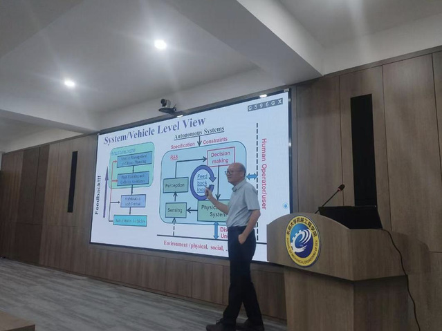 近年来,随着自动驾驶技术的快速发展,人工智能赋能的感知系统在自动驾驶系统中的作用愈发关键。为了加深我院师生对该领域前沿问题的理解,2025年6月6日,我院特邀英国拉夫堡大学航空与汽车工程系教授、香港理工大学机器人与自主系统讲席教授、低空经济研究中心主任Wen-Hua Chen(陈文华)教授,开展题为“AI Enabled Perception Systems in Autonomous Driving: Safety Implication and Control System Design”的讲座报告。陈文华教授专注于无人机与智能车辆技术的研发与应用,研究内容涵盖自动驾驶仪、态势感知、决策制定、系统验证、面向精准农业与环境监测的遥感技术等。近年来,他主持了英国EPSRC资助的控制理论前沿项目,聚焦于机器人与自主系统的新一代控制理论开发。