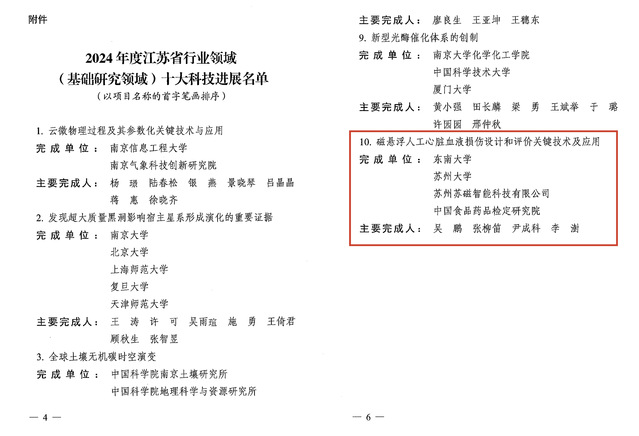近日,江苏省科学技术协会公布了2024年度江苏省行业领域十大科技进展。医学装备系吴鹏教授牵头的“磁悬浮人工心脏血液损伤设计和评价关键技术及应用”入选基础研究领域十大科技进展。