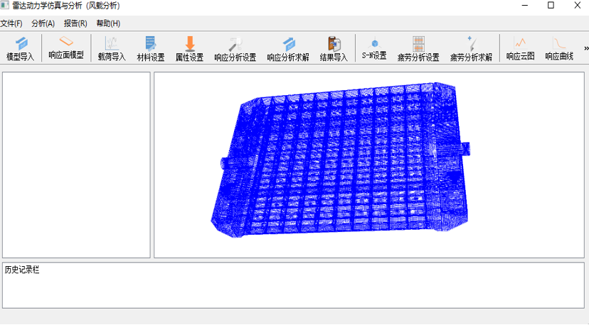 雷达系统动态仿真软件共分为两个模块:风载疲劳寿命评估模块和振动疲劳寿命评估模块,可分别针对地面车载雷达和机载雷达进行动响应分析和疲劳寿命评估。其中,风载疲劳寿命评估模块集成了响应面模型、瞬态响应分析、时域疲劳寿命评估等功能,可根据用户提供的车载雷达模型和相关参数自动生成阵面风压时程,并计算出危险部位的疲劳寿命;振动疲劳寿命评估模块集成了载荷转换、时域受迫振动分析、频域随机响应分析、时频域疲劳寿命评估等功能,可根据用户提供的机载雷达模型和载荷功率谱自动计算时频域响应和危险部位的疲劳寿命。
