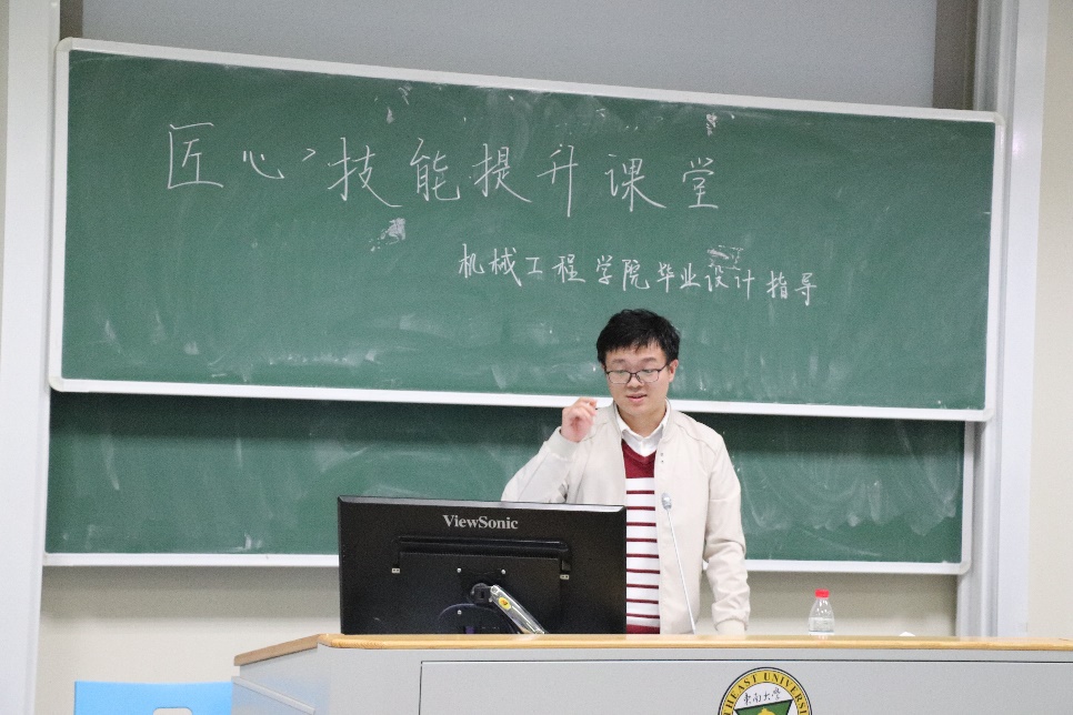 为帮助机械工程学院17级学生梳理毕业设计进程,保证学生能够高质量地完成毕业设计论文,11月17日晚18:30,机械工程学院开展了“匠•心”能力提升课堂毕业设计论文指导与分享活动,围绕当前毕业生最关心的毕设论文相关问题进行针对性指导、分享与解答。机械工程学院18级博士生汪䶮学长、机械工程学院团委副书记、17级本科生辅导员侯煜淋老师出席本次活动。本次活动由机械工程学院19级本科生张速恒主持。