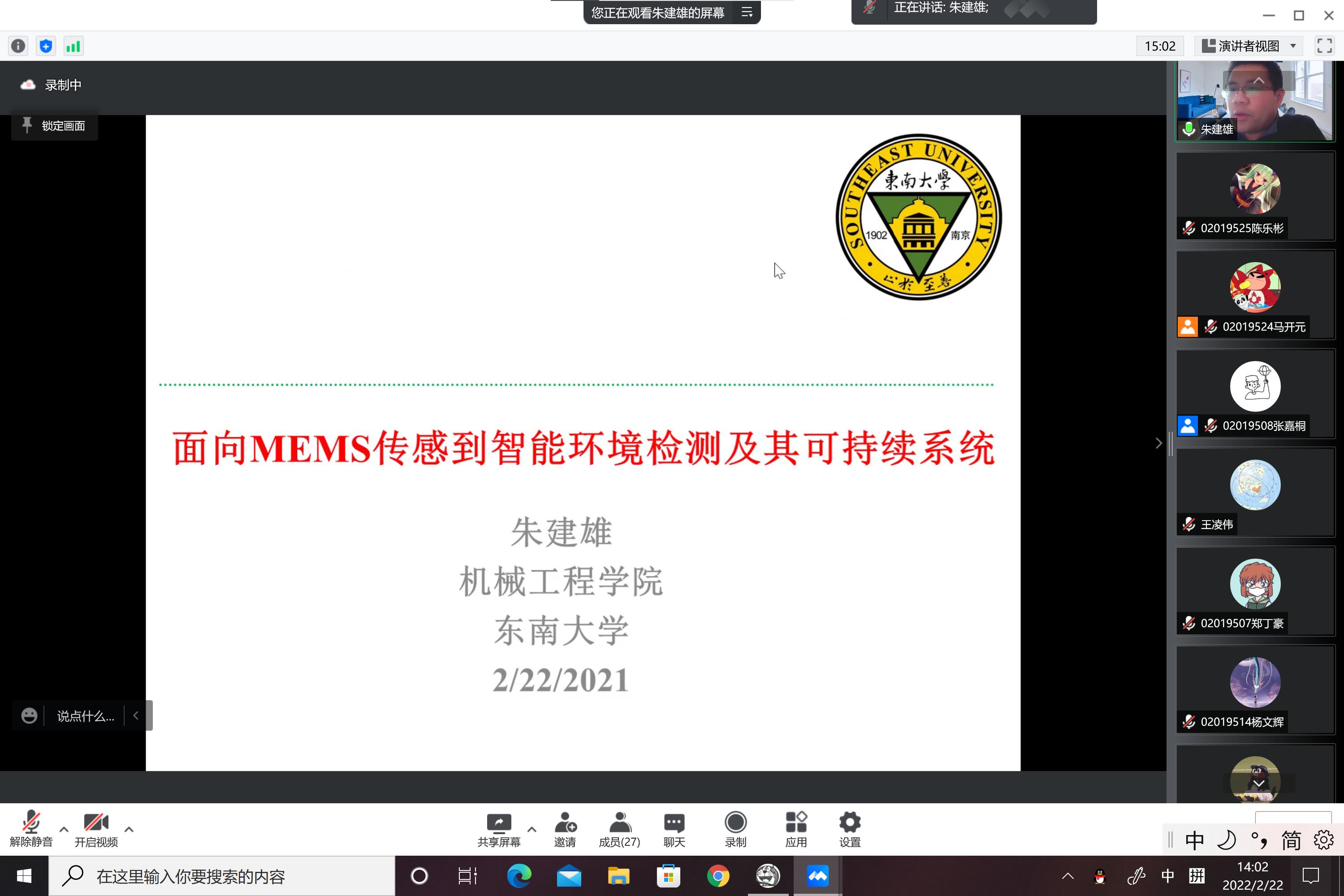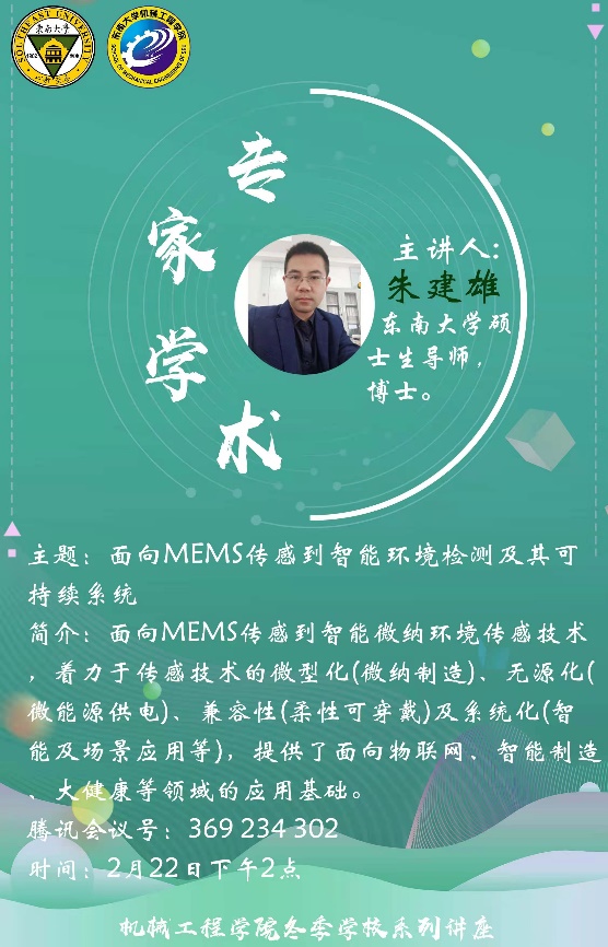 2月22日,球友会硕士生导师朱建雄老师为机械工程学院全体同学带来了一场别开生面的讲座,围绕面向MEMS传感到智能环境检测及其可持续系统这一主题,朱建雄老师从MEMS的发展历史与趋势出发,分析了其商业化面临的挑战,并着力于MEMS传感技术微型化、无源化、兼容性以及系统化这四个方面为我们详细介绍了MEMS传感的原理与应用。朱建雄老师列举从智慧城市到智能家居再到数字阮生、人体健康检测等领域的大量例子为同学们深动形象的展示了面向MEMS传感到智能环境检测及其可持续系统在面向物联网、智能制造以及大健康等领域的广泛应用。同时朱建雄老师也讲座过程中对于各种检测的机理深入浅出的为同学们做了介绍。最后朱建雄老师给同学们展示了自己在面向MEMS传感到智能环境检测及其可持续系统方面的一些研究成果,并与同学们做出了一些交流探讨,通过这场讲座,同学们对MEMS有了一定的了解,也明白了该项技术良好的前景。