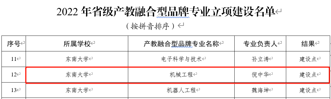 东南大学机械工程专业入选江苏省产教融合型品牌专业建设点