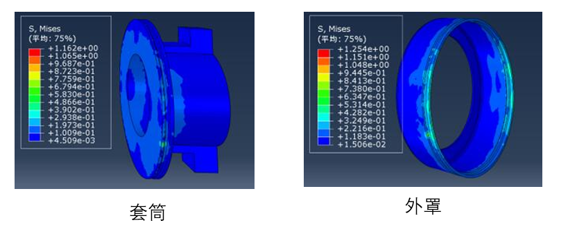 如图一,在仿真过程中,我们采用固定内圈不动,在套筒的端耳上加载拉力的受力方式,在该力的作用下,力的传递途径为:套筒---套筒与外罩的轧制部分---外罩与外圈面接触---外圈---滚子---内圈。