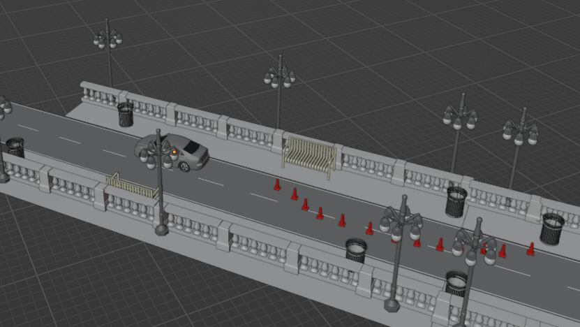 项目简介:先进行三维blender软件的快速培训,使学生在短时间内较熟练地掌握3D建模中点、线、面等基本要素的生成融合方法。在此基础上,基于blender软件对工业园区内的测试道路段进行模型绘制