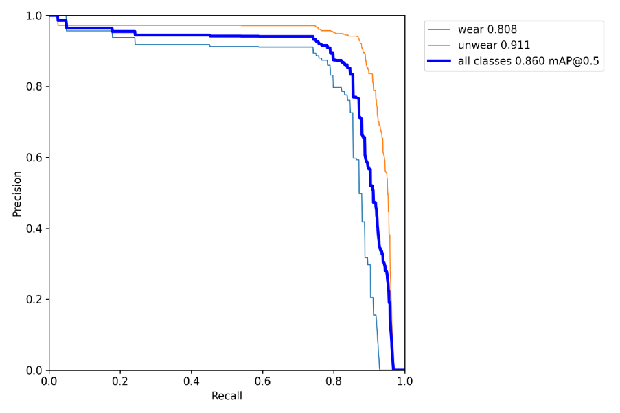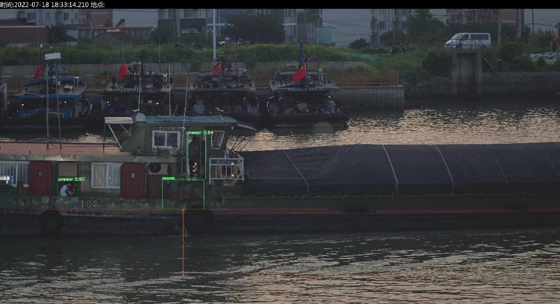 通过对数据库中两千余张图片进行标记,使用yolo v5进行图像识别训练,将训练得到的权重文件导入detect图像检测程序中,分别从数据库和网络上寻找不在训练集中的图片进行验证,船员定位和是否穿着救生衣结果基本准确。