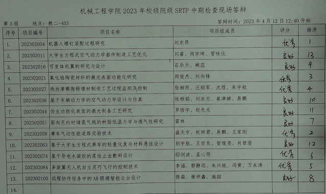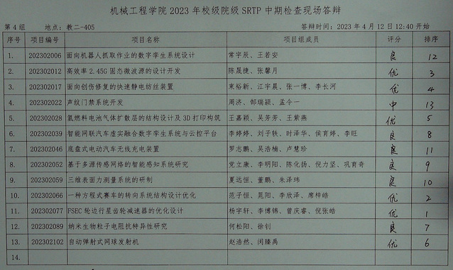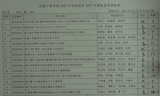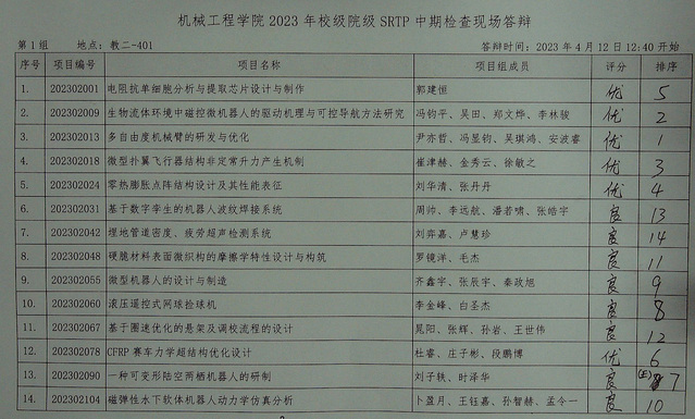 机械工程学院2023年校级、院级SRTP项目中期检查答辩于202341212:301600在本科教学楼进行。现将结果公示如下。